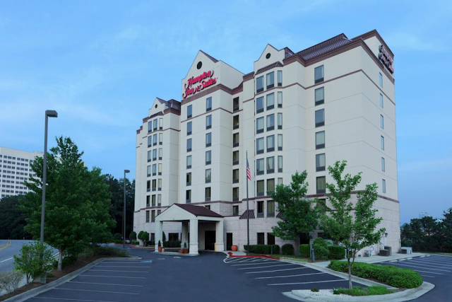 The funniest part is when we finally got to our hotel , Hampton Suites right by Suntrust Park - about a half a mile and within walking distance, Cade sees people coming out with Cubs jerseys on. He freaked out just excited to see someone with a Cubs jersey on. Ohhhhh little did he know.